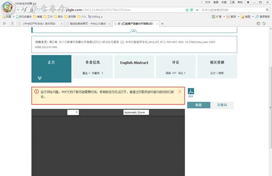最近,小编偶然在中华医学期刊网的后台收到类似询问:“PDF失效,不能下载PDF”、“文章看不到正文”等情况。我们看到全文阅读界面可能是这个样子: